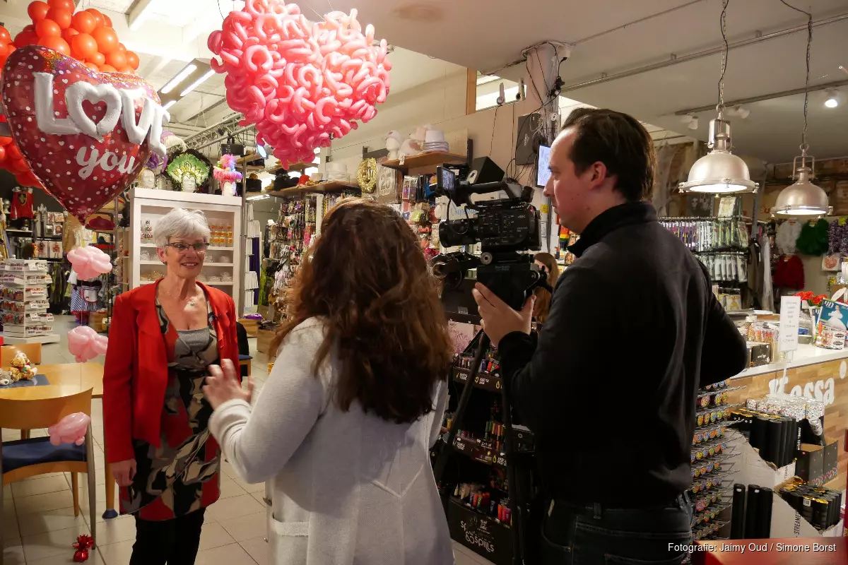 De winkel staat in de periode tot en met Valentijn helemaal in het teken van liefde en is versierd met roze ballonnen en knuffels.