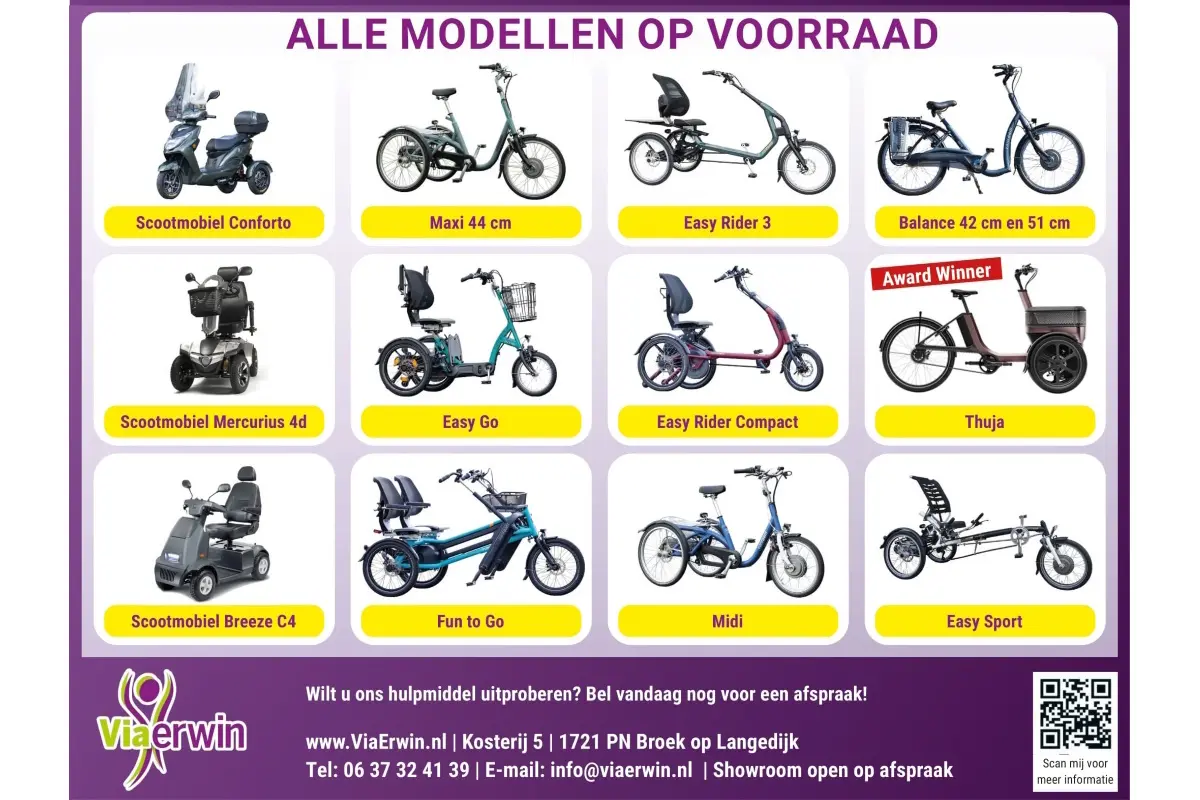 Personen die niet meer op een gewone tweewieler kunnen fietsen zoeken naar een goed en veilig alternatief. De driewielfiets ofwel de driewieler van Van Raam is met name voor mensen die extra ondersteuning en stabiliteit willen hebben tijdens het fietsen. Wij bieden driewielers voor volwassenen en voor kinderen.